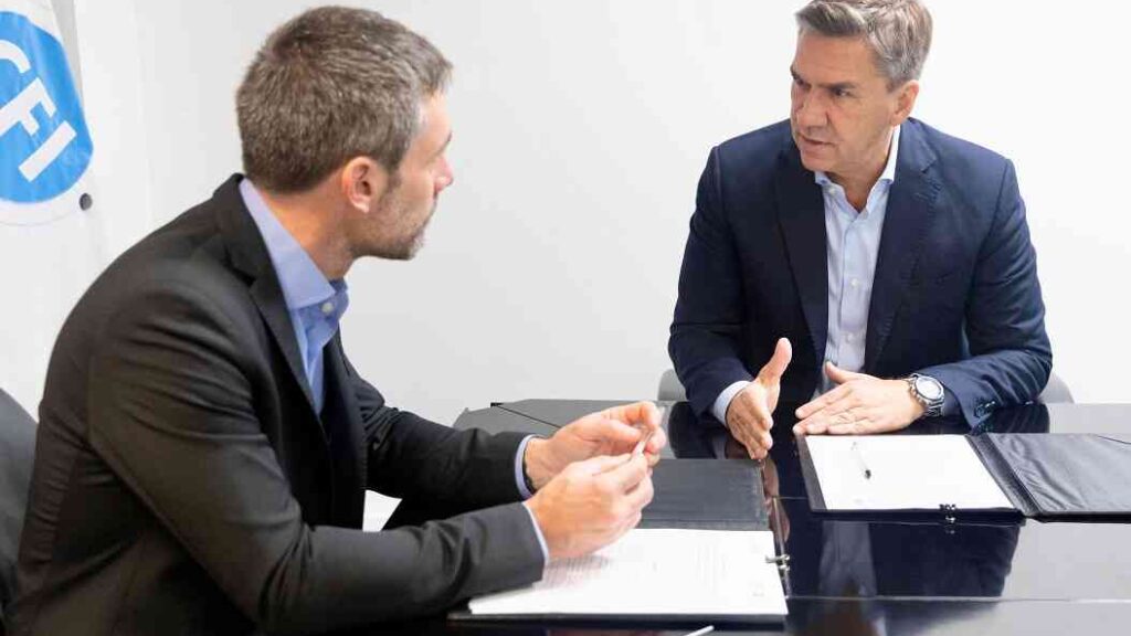 El presidente de la Cámara de Comercio de Resistencia, Walter Bistman, junto al vicepresidente 2°, Nicolás Aguiar, se reunió este jueves con el secretario...