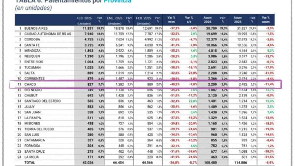Se desplomó un 40% la venta de 0KM en el Chaco y la provincia profundiza su caída libre