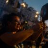 Organizaciones sociales y de izquierda realizaban una manifestación frente al Congreso en protesta de las políticas impulsadas por el Gobierno del presidente Javier Milei, para su...