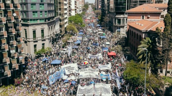 Cientos de miles de personas se movilizan para rechazar la medida del presidente contra el financiamiento universitario.