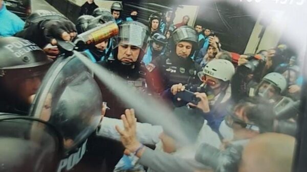 La policía tiró con carros hidrantes y gas pimienta a los fotógrafos y periodistas que cubrían la protesta. La Comisión Por la Memoria contó...